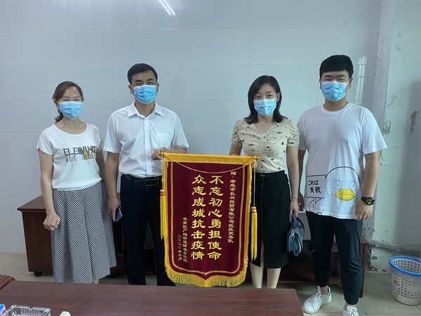 “我代表社區(qū)全體居民感謝貴公司3名黨員干部對(duì)本社區(qū)抗疫工作的幫助”。 6月29日下午,孝南區(qū)廣場街道曬書臺(tái)社區(qū)書記李丹,將錦旗送到孝感市長興投資有限公司時(shí)動(dòng)情地說。